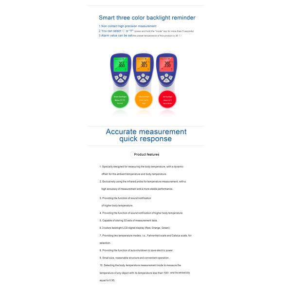 | Measurement Range | Temperature mode:34.0℃~42.9℃ | ||||
